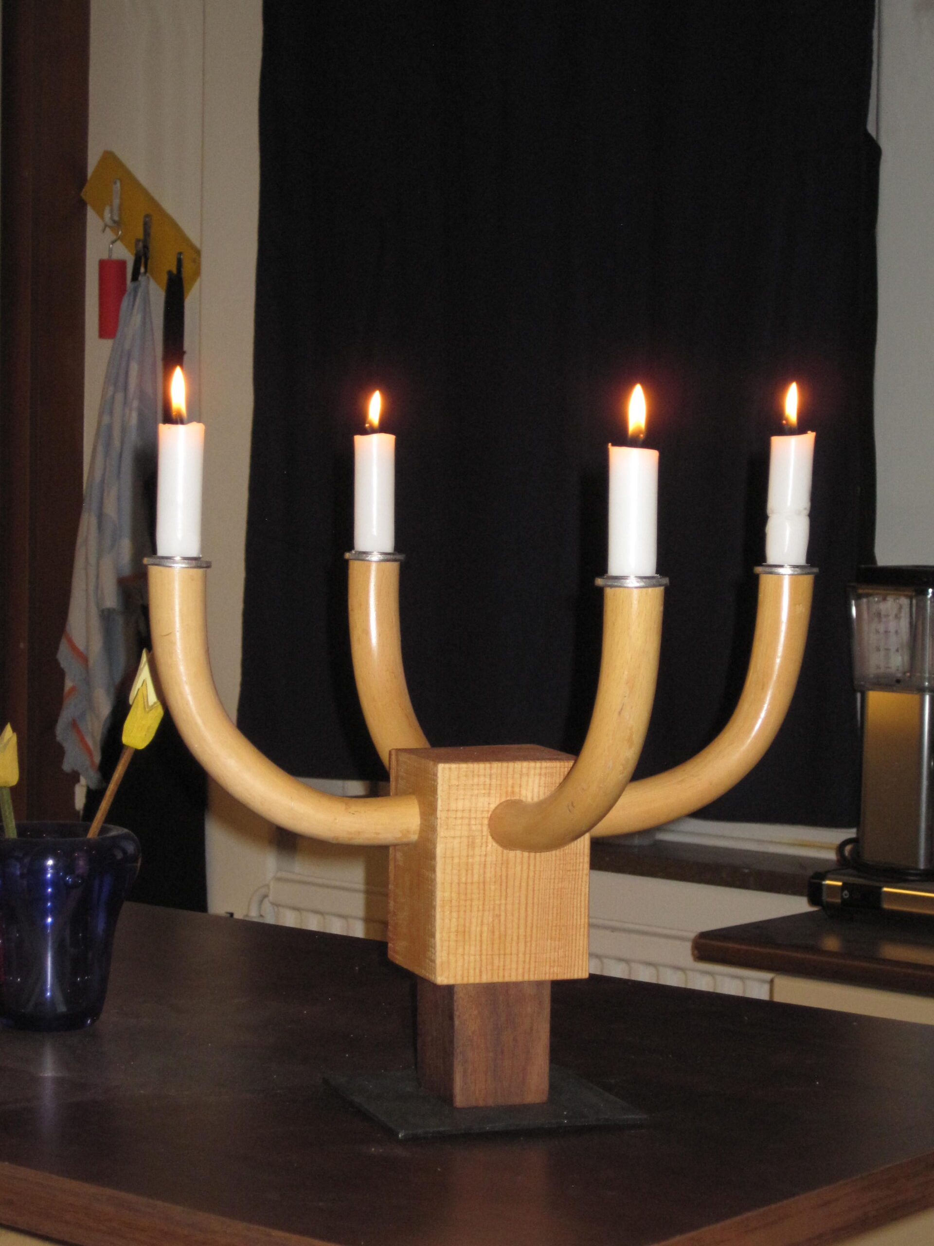 Candelabra made from found materials, pine,