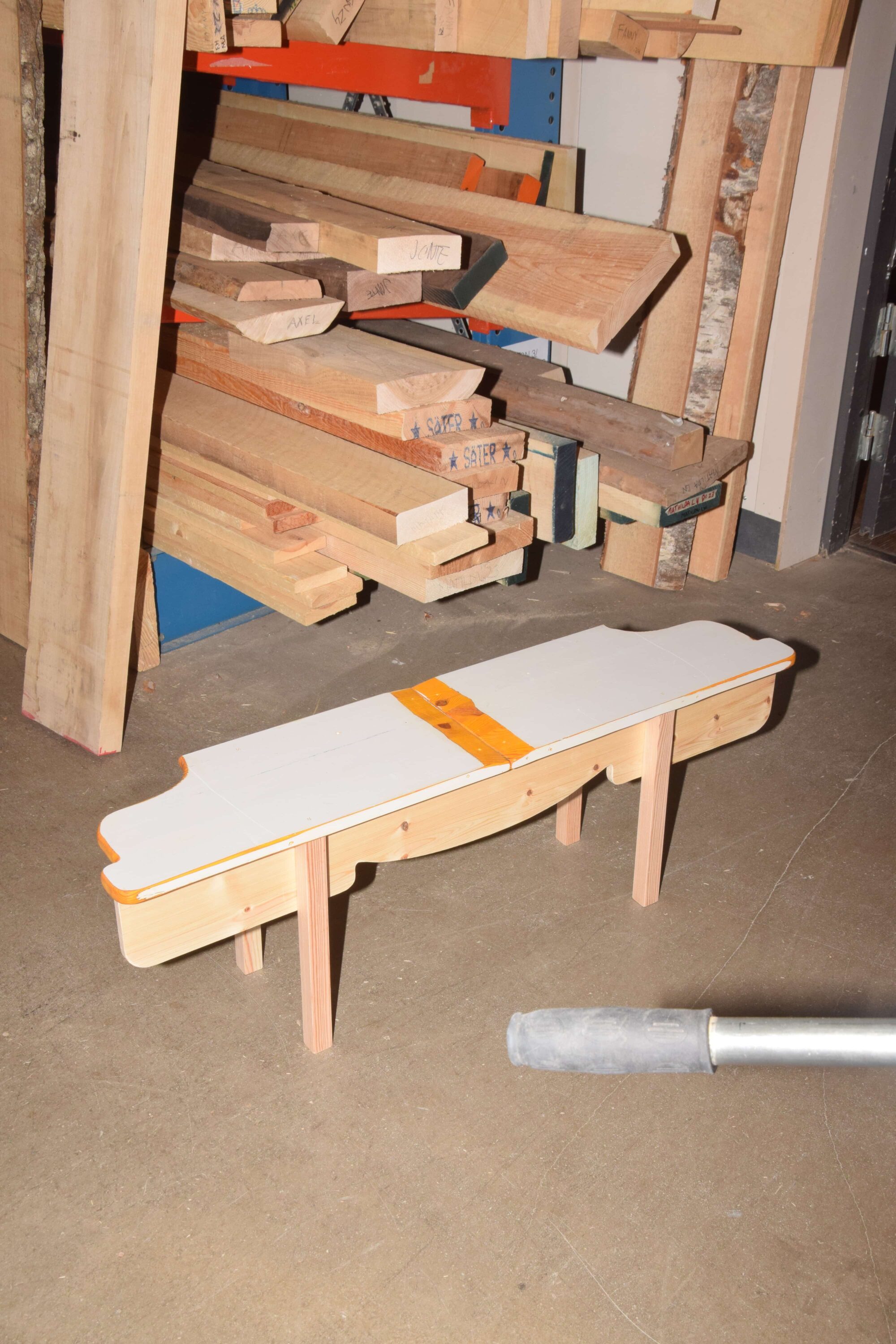 Bench, found materials, pine. Part of group show “Trä Art” in Bodafors 2024.